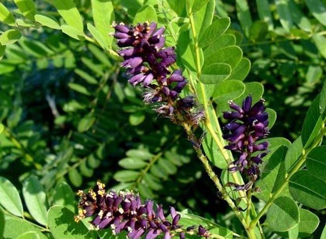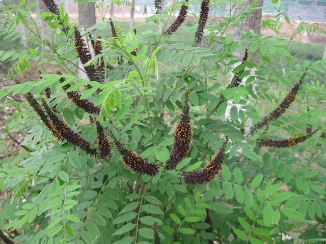 紫穗槐豆科落叶灌木,高1-4米。枝褐色、被柔毛,后变无毛,叶互生,基部有线形托叶,穗状花序密被短柔毛,花有短梗;花萼被疏毛或几无毛;旗瓣心形,紫色。荚果下垂,微弯曲,顶端具小尖,棕褐色,表面有凸起的疣状腺点。