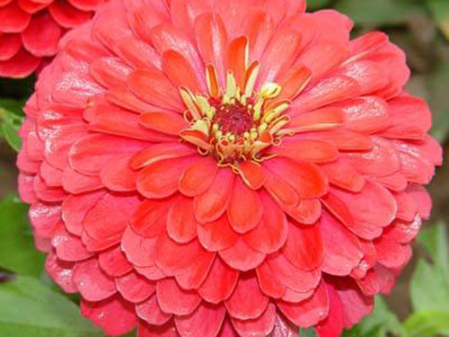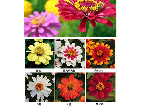 百日草,一年生草本植物。侧枝呈杈状分枝。夏秋开花,头状花序单生枝顶,花径约10厘米,花瓣颜色多样,花期长,花型变化多端,基本上都是重瓣种。