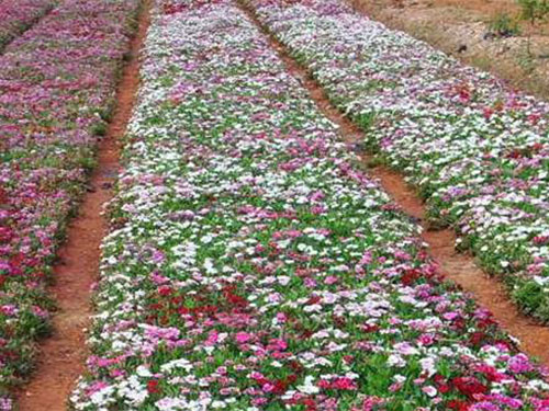 石竹株型低矮,茎秆似竹,叶丛青翠,自然花期5-9月,从暮春季节可开至仲秋,温室盆栽可以花开四季?;ǘドΧ?,单生或成对,也有呈圆锥状聚伞花序,花径不大,仅2至3厘米,但花朵繁茂,此起彼伏,观赏期较长?;ㄉ邪住⒎?、红、粉红、大红、紫、淡紫、黄、蓝等,五彩缤纷,变化万端。园林中可用于花坛、花境、花台或盆栽,也可用于岩石园和草坪边缘点缀。大面积成片栽植时可作景观地被材料,另外石竹有吸收二氧化硫和氯气的本领,凡有毒气的地方可以多种。切花观赏亦佳。